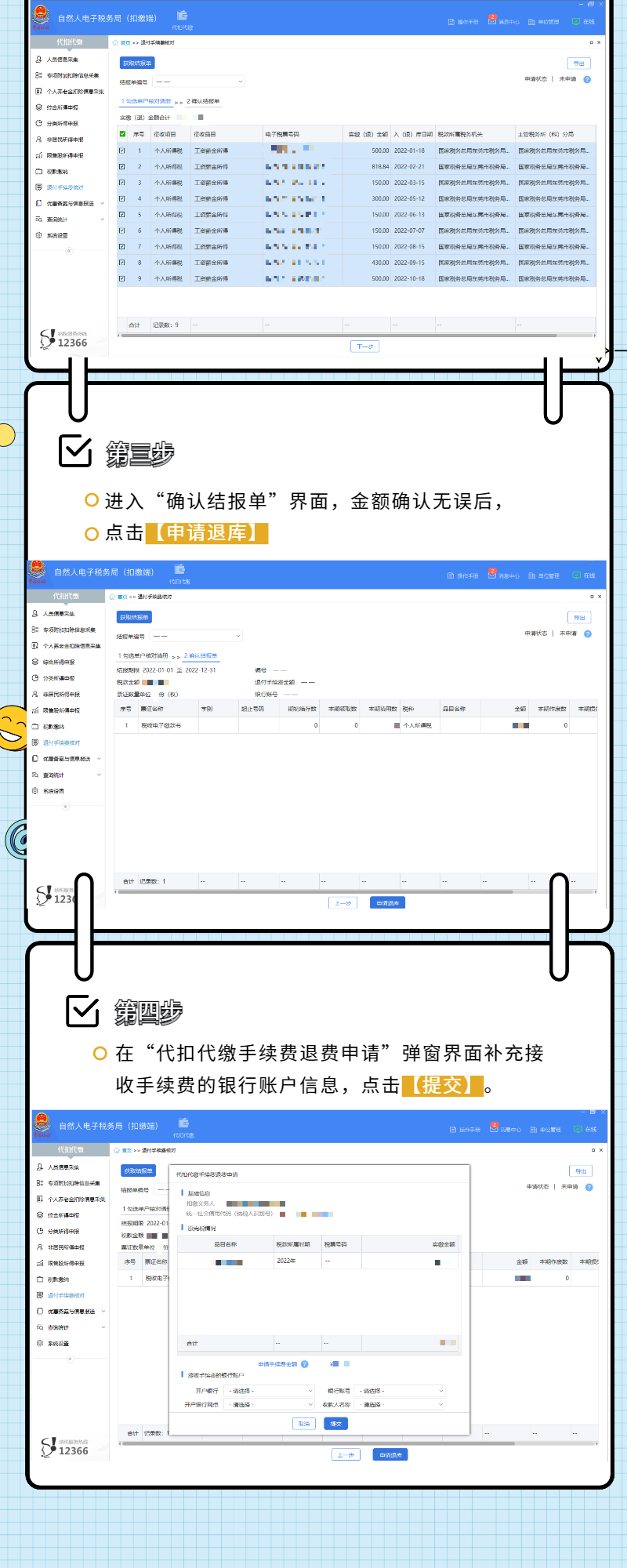 根据《关于进一步加强代扣代收代征税款手续费管理的通知》(财行〔2019〕11号)第四条规定,"三代"税款手续费按年据实清算。代扣、代收扣缴义务人和代征人应于每年3月30日前,向税务机关提交上一年度"三代"税款手续费申请相关资料,因"三代"单位或个人自身原因,未及时提交申请的,视为自动放弃上一年度"三代"税款手续费。代扣、代收扣缴义务人和代征人在年度内扣缴义务终止或代征关系终止的,应在终止后3个月内向税务机关提交手续费申请资料,由税务机关办理手续费清算。