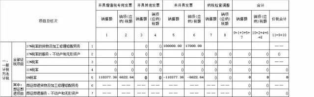 2、在错误税率一栏的未开票收入中,将开错发票的收入和税金填写负数: