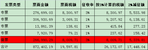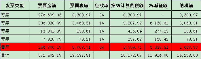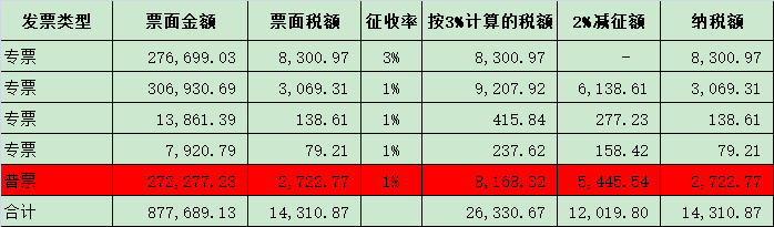 但是,如果3%的普通发票按照1%价税分离的话,实际纳税应该是14310.87