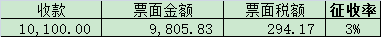 现在你发票开错了(政策发布之前开的),开成了3%的发票,但是你收的款肯定是不变的,还是10100.