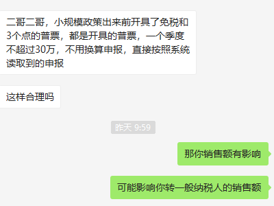 对此,很多人就争论不休,有人说小规模申报系统自动填充,带出来是什么就是什么,他们实操免税发票带出来销售就是发票票面金额。