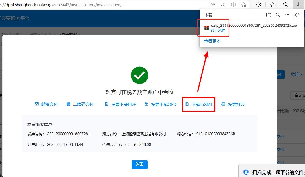 如果你尚未纳入数电票试点范围,还没有税务数字账户,可以让开票方给您发送XML文件,开票方下载XML文件的方法如下: