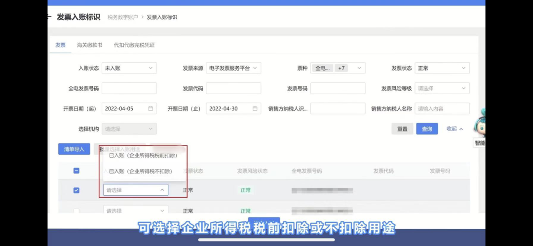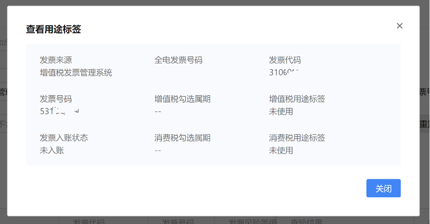 ④纳税人可点击“查看用途标签”查看“增值税勾选属期”“增值税用途标签”“发票入账状态”等信息。
