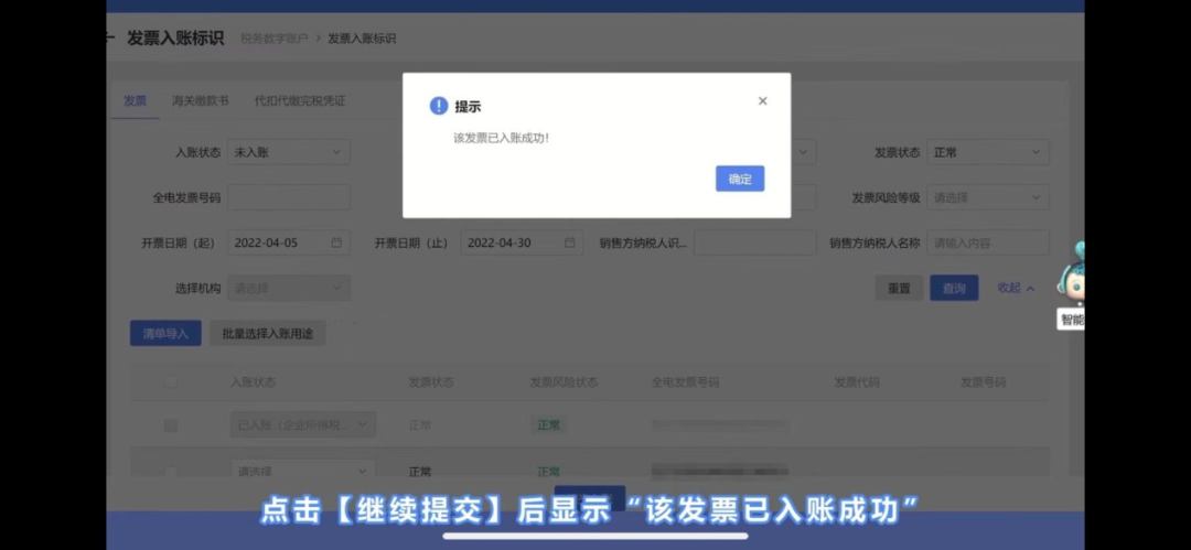 (3)点击【确认】按钮,系统提示【提交成功】。
