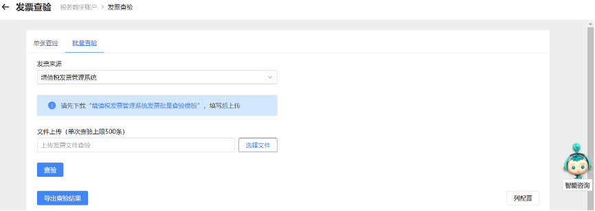 ③在批量查验模板中填写发票信息,单次查验上限500条。