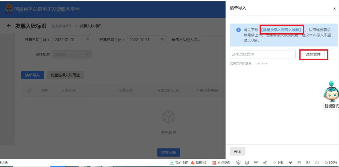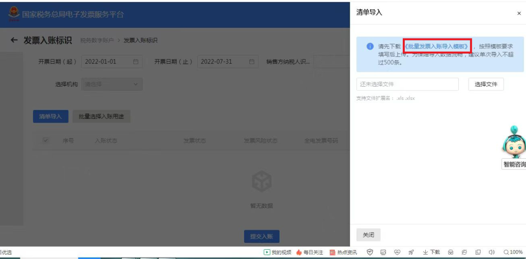 ②根据发票来源选择下载“增值税发票管理系统发票批量查验模板”或“电子发票服务平台发票批量查验模板”。