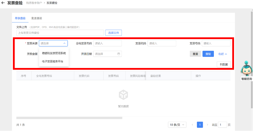 ②纳税人可输入发票信息进行查验。纳税人选择“发票来源”后,录入“全电发票号码”或“发票代码”“发票号码”等信息。