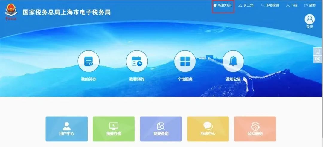 提示:进入税务数字账户需要登录上海市电子税务局(体验新版),点击上海市电子税务局首页右上角的【新版登录】进入。