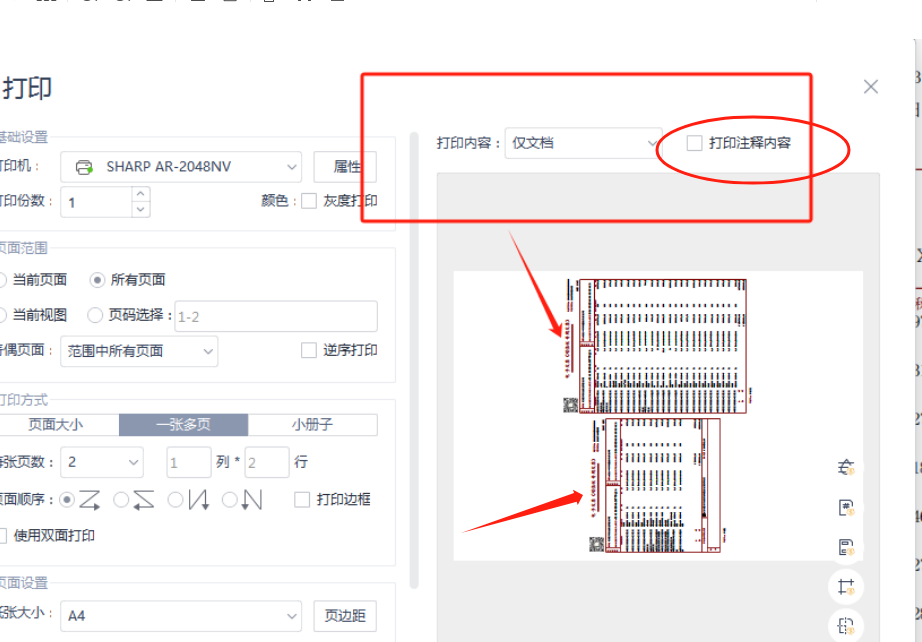 功夫不负有心人,很快发现了症结所在:是打印设置的问题!若打印内容为:仅文档,如下图: